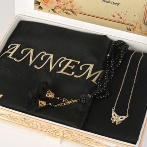 Canım Annem Lüks Kutulu , İsme Özel Seccade, Pamuklu Şal, İnci Tesbih, Kolye (27*19.5 cm 800 gr)